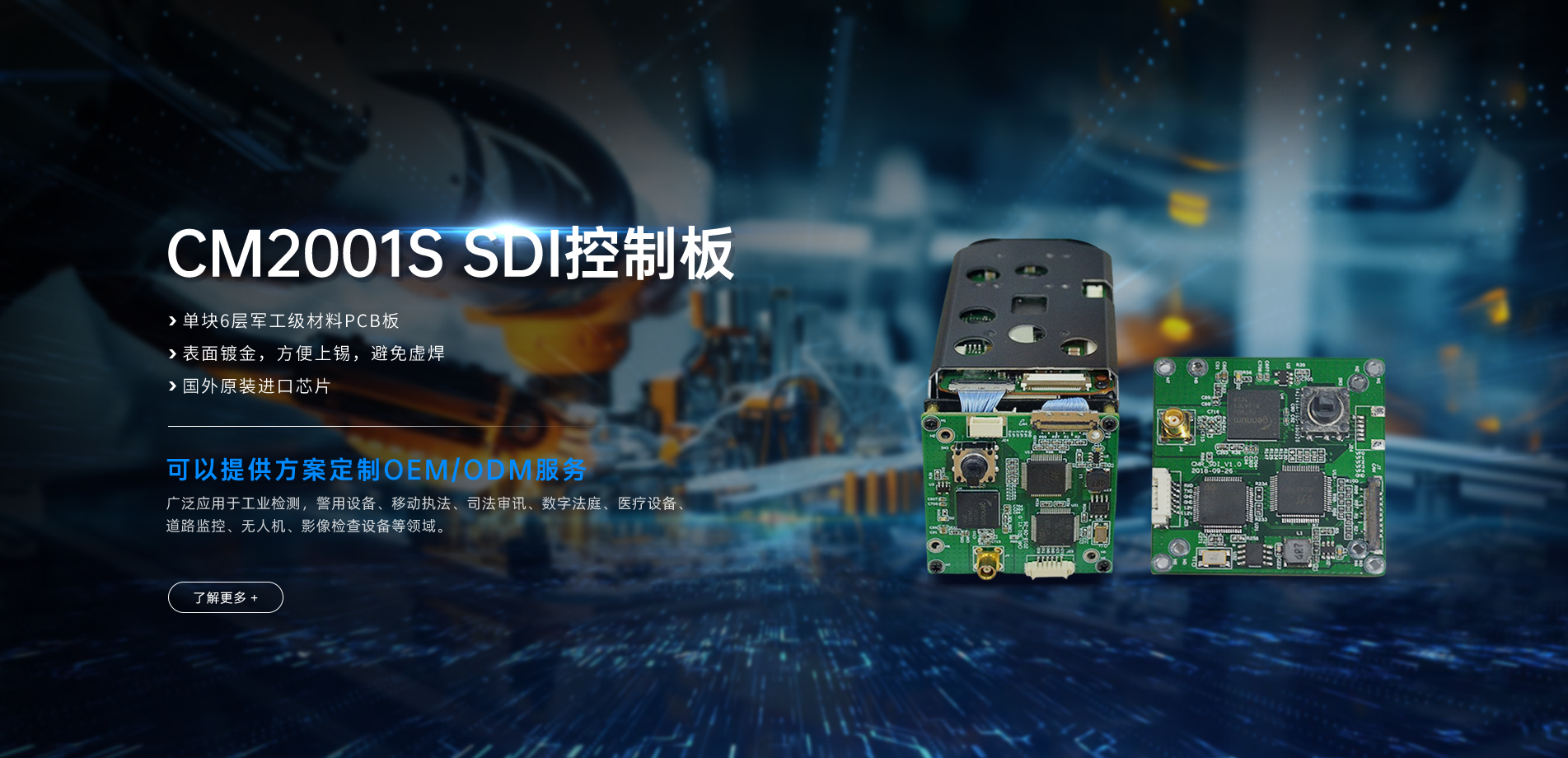 經營日本SONY FCB/EVI系列產品、海康威視系列產品、韓國CM高清系列產品及凱創拓達自有品牌。公司主要從事醫療手術直播攝像機、無人機航拍、工業檢測視頻設備、機器人攝像頭、監(jiān)控視頻、視頻會議、教學錄播、審訊系統、以及其他特殊行業專用一體化攝像機的研發(fā)...